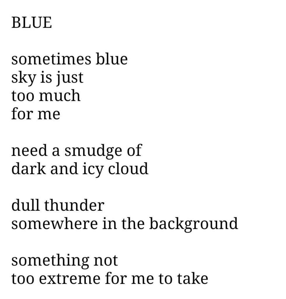 BLUE Share this: Click to share on X (Opens in new window) X Click to share on Facebook (Opens in new window) Facebook Like Loading... Related Published by Damian Garside View all posts by Damian Garside